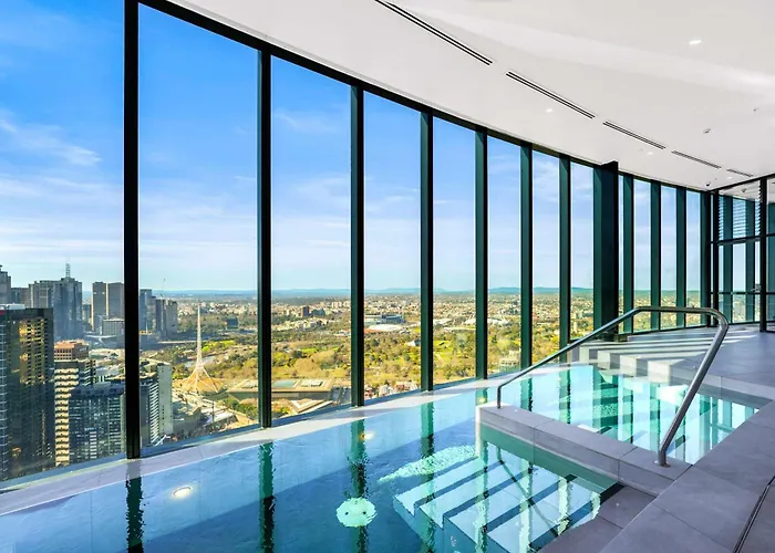 Das 100 m² große Sky High Luxury - Melbourne Square 57Th Floor Apt empfängt Reisende im Zentrum von Melbourne City, in einer Entfernung von 15 Gehminuten von AWAY der Eureka Skydeck 88 Aussichtsplattform entfernt. Der Zugang zu einem Außenpool garantiert den Gästen einen entspannten Aufenthalt.
